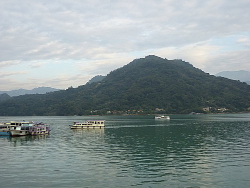 有的遊艇載著遊客悠遊於湖面上