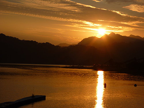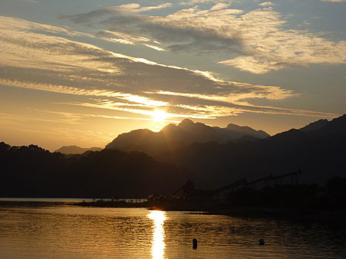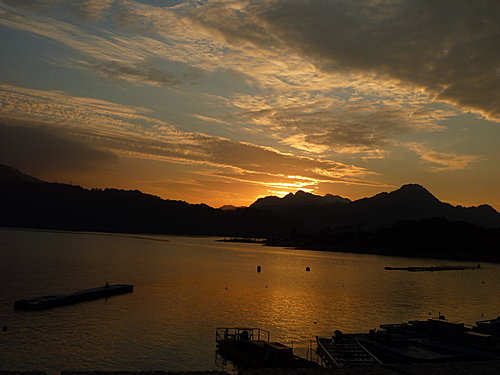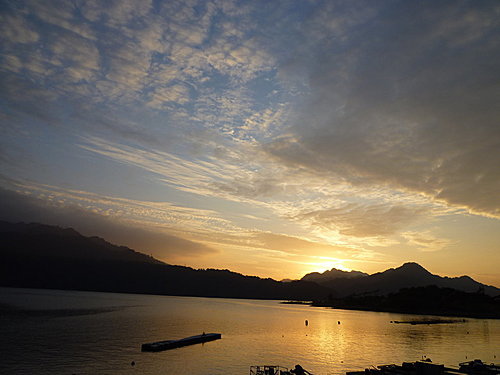 千變萬化的彩霞染黃了湖面